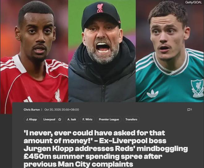 克洛普在The Diary of a CEO上表示:“我弄不明白这怎么可能,没人曾经告诉我,我们还能这样花钱……我在利物浦的最后一年,显然我们有Adidas的交易, 还有新球场,赚了更多的钱,但我永远不可能要求得到这么多转会费……但这也没关系,当时就是没有,对我来说没任何问题。”
